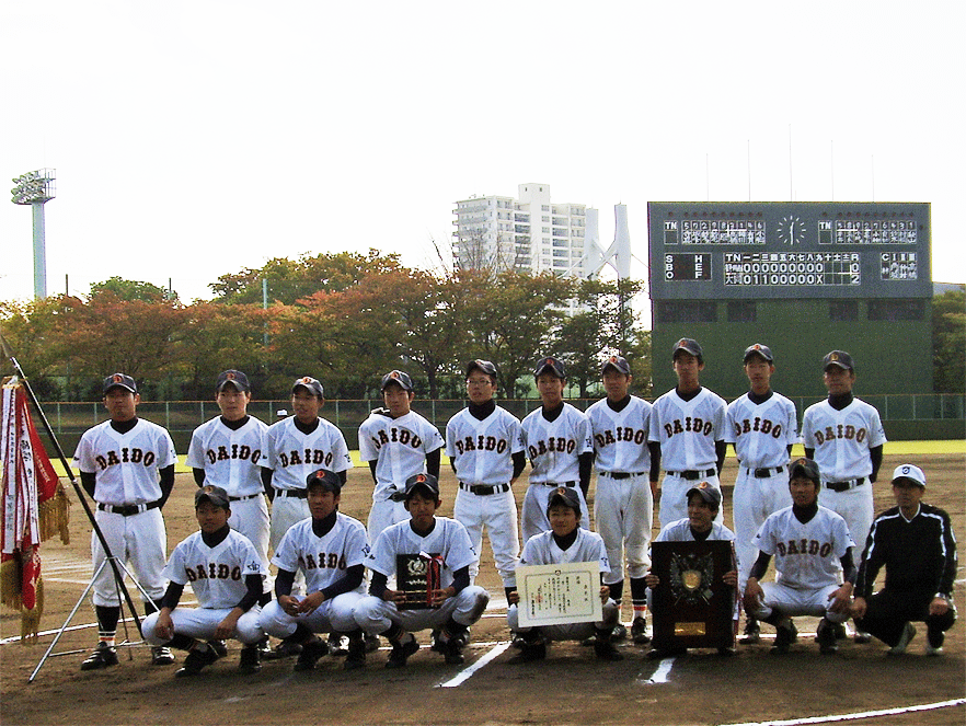 11月3日(土)、平成24年度秋季東海地区高等学校軟式野球大会の決勝戦が熱田球場で行われました。 静岡商業高校と対戦した本校の軟式野球部は2対0で守り勝ち、見事、初優勝を飾りました。