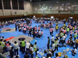 「第21回 全日本ロボット相撲東海大会」開催! 9月20日(日)、本校の体育館で「第21回 全日本ロボット相撲東海大会」が行われました。この大会は全国9地区で行われる地区大会の一つですが、京都、石川、神奈川、長野など東海地区以外からも高校生や一般の方が参加され大きな大会です。本校は会場担当校として、生徒41名、教職員16名、OB3名の計60名が運営に協力しました。 自立型ロボット96台、ラジコン型ロボット94台、計190台のロボットが土俵入りし、観客を合わせると800名近い人が本校体育館に来られて大賑わいでした。 前日の会場設営から競技大会終了後、撤収をするまで、2日間にわたり、生徒の活躍ぶりが目立ち、主催企業の「富士ソフトkk」や「社団法人全国工業高等学校長協会」の担当の方より「生徒さんがしっかり動いてくれて、大会がスムーズに運営できました。後片付けも順調で予定よりもはやく終わりました。」とおほめの言葉を頂きました。